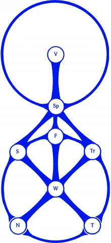 Die Ganzheit des Selbst mit den einzelnen Funktionen : V-erstand, Sp-rechen, F-ühlen, Tr-äumen, S-ehen, T-onal, N-agual und W-ille